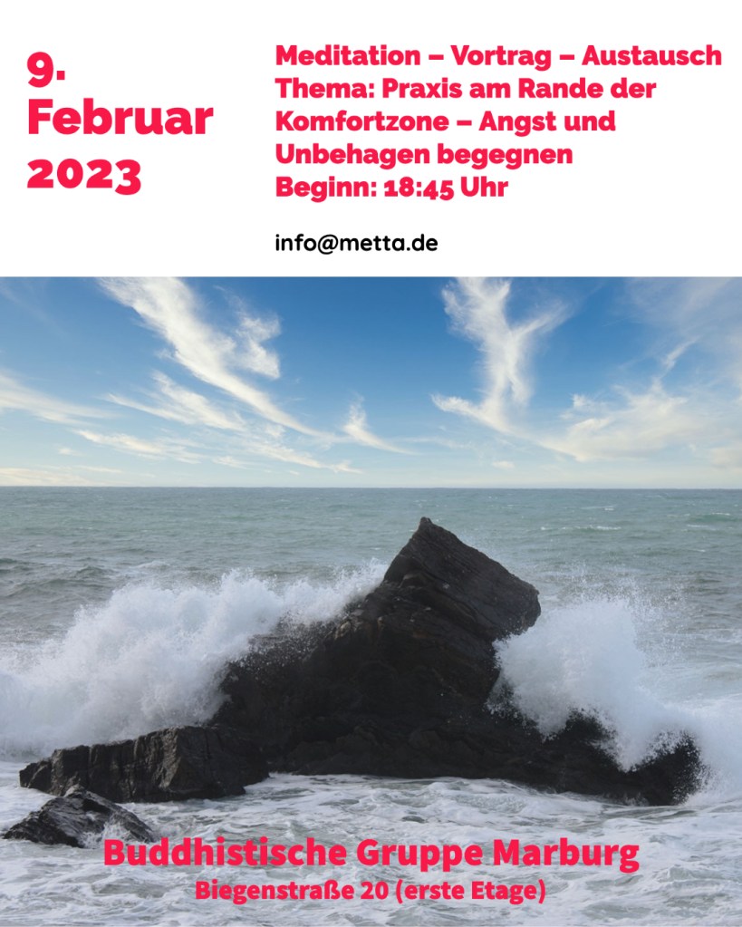 Wie damit in der Meditation umgegangen werden kann, werden wir heute nach der gemeinsamen Meditation in einem Vortrag und dem sich anschließenden Gespräch ausloten.