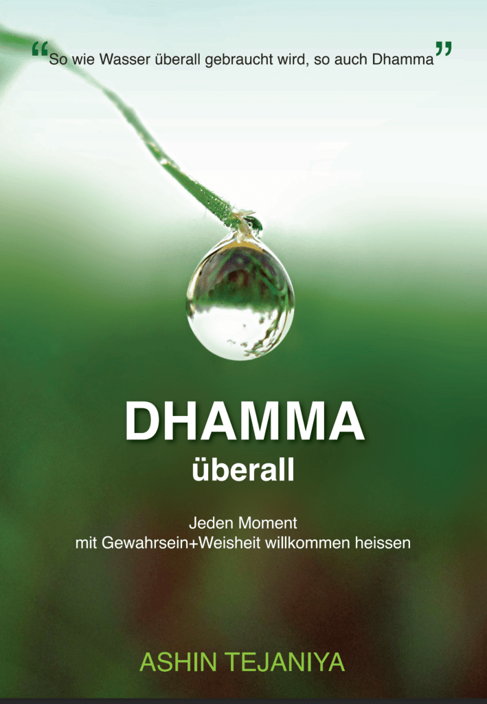 oder - Ein gedrucktes Exemplar von „Dhamma überall – Jeden Moment mit Gewahrsein+Weisheit willkommen heißen“ von Sayadaw U Tejaniya (Abt des Shwe Oo Min Dhamma Sukha Forest Meditation Center in Yangon, Myanmar)