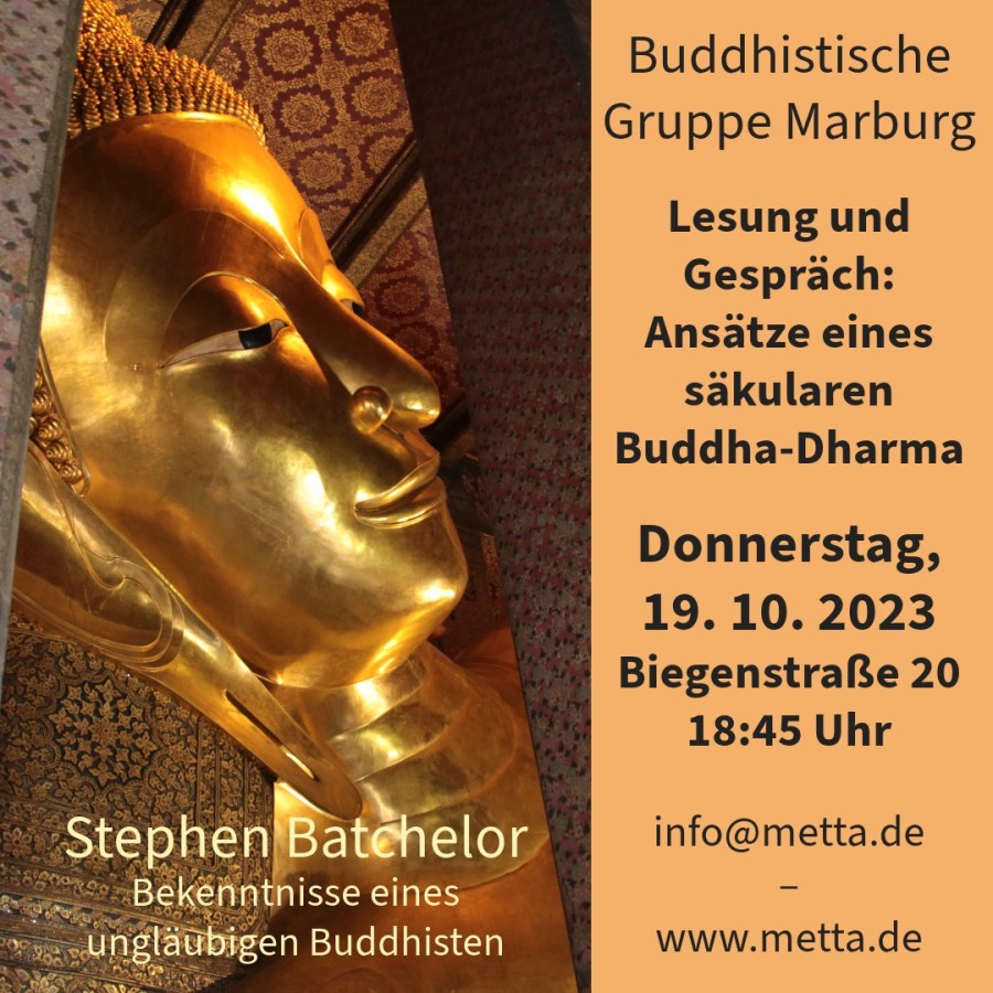 In seinem Buch „Bekenntnisse eines ungläubigen Buddhisten“ legt Stephen Batchelor seine Gedanken zu einem zeitgemäßen säkularen Buddha-Dharma dar. Er verzichtet auf Glaubenssätze und bezieht sich auf das, was Siddharta Gotama aus sich heraus entwickelte und weniger auf die religiösen Vorstellungen, denen er zu seinen Lebzeiten begegnete. Dabei kommt er zu interessanten Schlussfolgerungen und deutet manche Stellen des Palikanons neu. Zentral ist für ihn die Lehrrede an die Kalamer (Kalama Sutta).