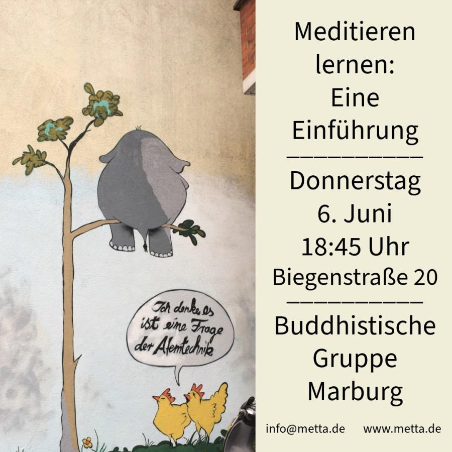 Nach dem kurzen Überblick über buddhistische Praxisformen und die Bedeutung der Ethik und des Humors in diesem Zusammenhang, widmen wir uns gemeinsam dieser Übung in Gestalt einer angeleiteten Meditation. Da auch bereits Erfahrenere immer wieder neu beginnen („Zen-Geist ist Anfänger-Geist“) sollten, ist der Abend für alle geeignet, die einen (Neu-)Einstieg wagen wollen. Nichts hemmt die Meditation mehr, als sich in Routinen einzurichten. Regelmäßig zu meditieren ist sicherlich eine gute Angewohnheit, aber nur, wenn sie nicht aus pflichtergebener Gewohnheit betrieben wird, sondern mit frischem Interesse sowie mit Freude und Enthusiasmus, sagen zurecht unsere Meditationslehrerinnen und -lehrer.