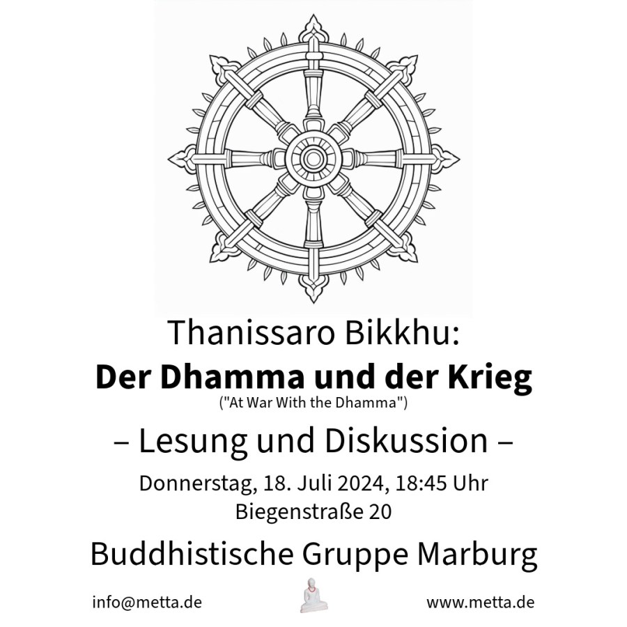 Wie aktuell dieses Thema unter Buddhisten gerade diskutiert wird, sieht man u. a. daran, dass die Zeitschrift der Deutschen Buddhistischen Union (DBU) die Nummer 2/2024 dem Thema „Krieg und Frieden“ gewidmet hat.