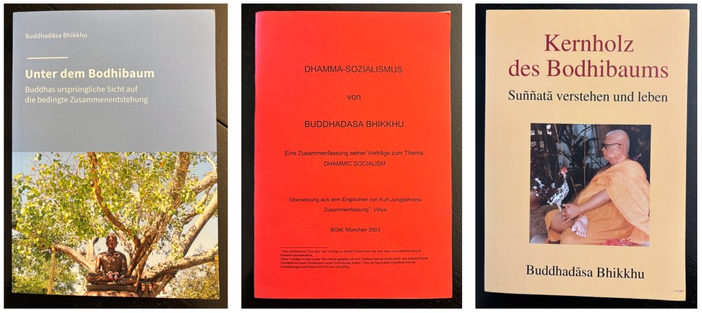 Die Buddhistische Gesellschaft München (BGM) gibt als Dhamma-Dana, also kostenlos bzw. gegen Spende, viele Dhamma-Bücher heraus. Sie haben uns drei Bücher von Buddhadasa Bikkhu (1906-1993) zur Verfügung gestellt. Er war einer der wichtigsten und einflussreichsten buddhistischen Lehrer Thailands. Buddhadasa verband die Lehren des frühen Buddhismus mit denen des späteren Mahayana. Seine Werke und Unterweisungen werden heute in den „Buddhadasa Indapanno Archives“ in Bangkok bewahrt, studiert, gelehrt und geübt. Denjenigen, die einmal Gelegenheit haben, nach Bangkok zu kommen, sei ein Besuch dieses Orts empfohlen. Er liegt wunderbar eingerahmt von tosendem Verkehr auf der einen und einem großen Park auf der anderen Seite. Ein perfekter Praxisort also.
