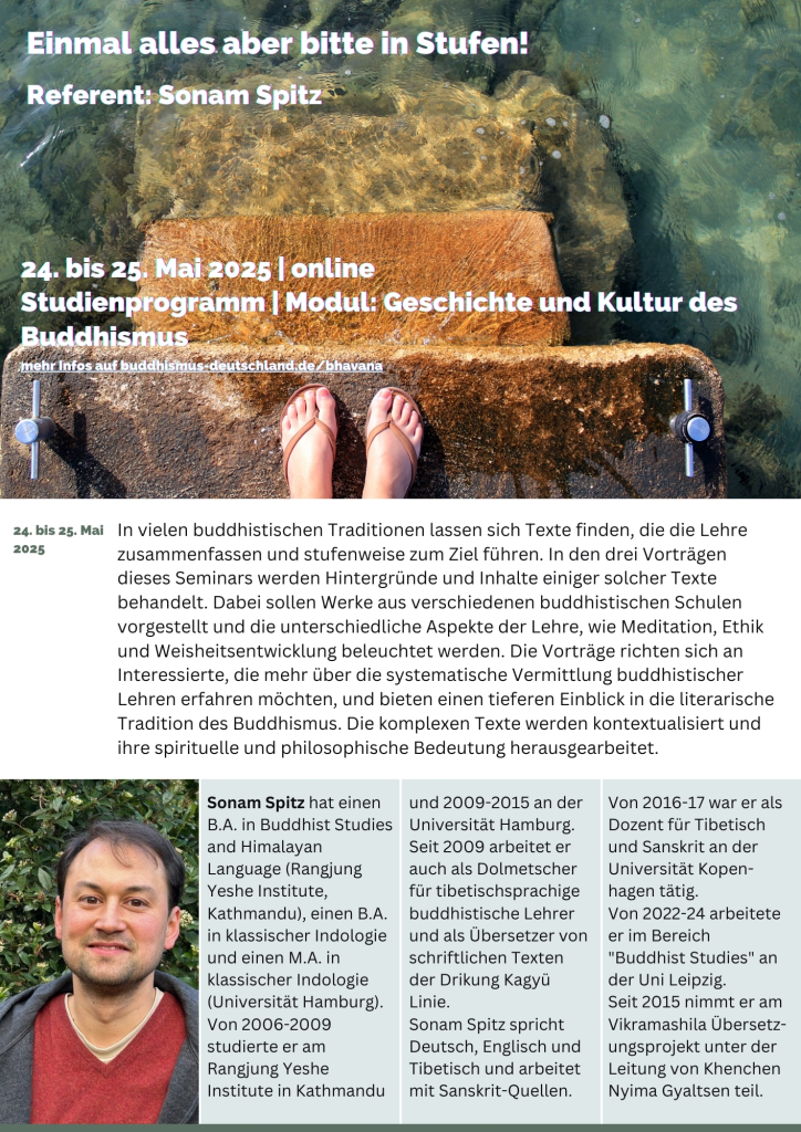 Das ist sicherlich eine gute Gelegenheit, sich über die verschiedenen Stufenwege der buddhistischen Traditionen kundig zu machen.