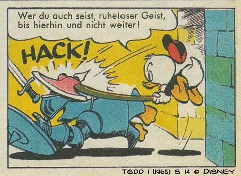 Was sicherlich nicht hilft, sind heftige Reaktionen, wie Tick es in diesem von Frau Dr. Erika Fuchs übersetzten Panel Carl Barks’ versucht.
