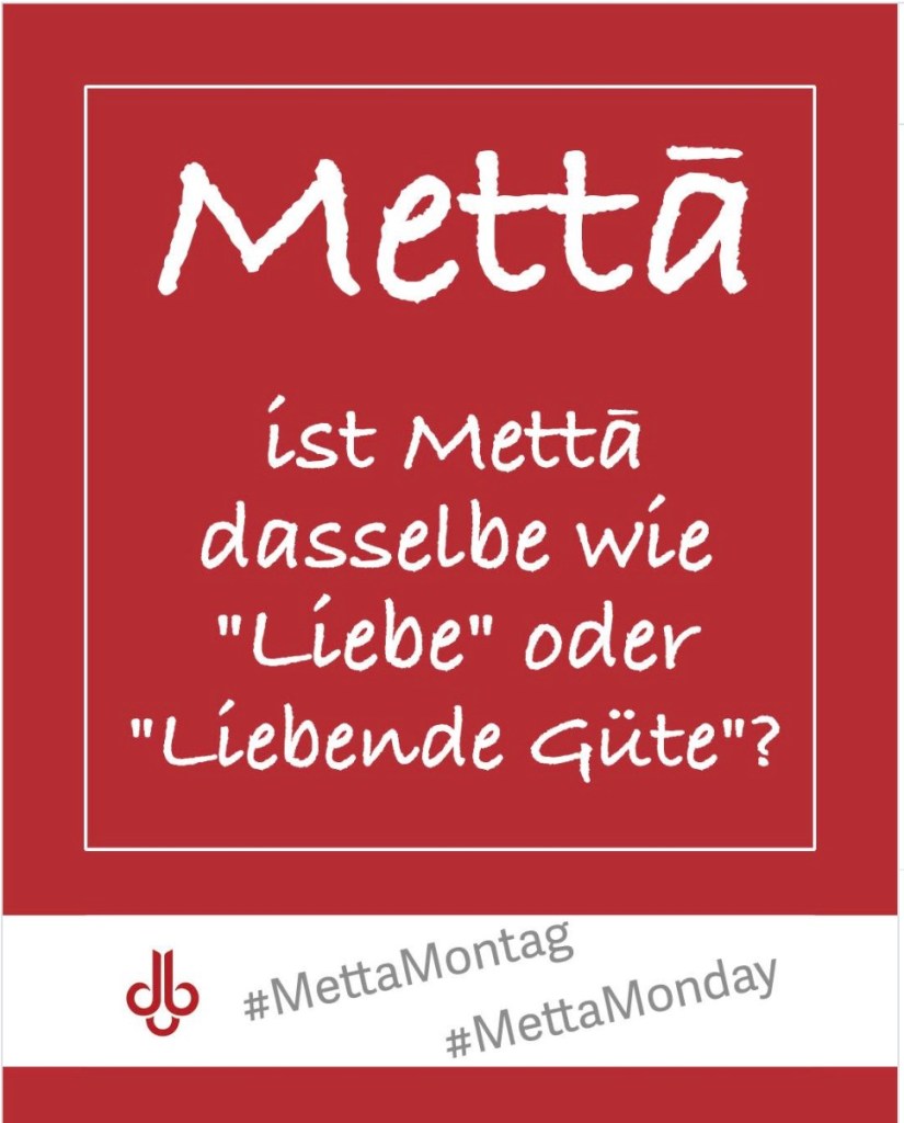 „❤️ Es ist ein weit verbreitetes Missverständnis, dass Mettā „Liebe“ oder „Liebende Güte“ bedeutet. Das schreibt Thānissaro Bhikkhu in dem kleinen Büchlein „Die erhabenen Haltungen des Geistes“* (S.38), das die Theravada AG der Deutschen Buddhistischen Union herausgegeben hat.