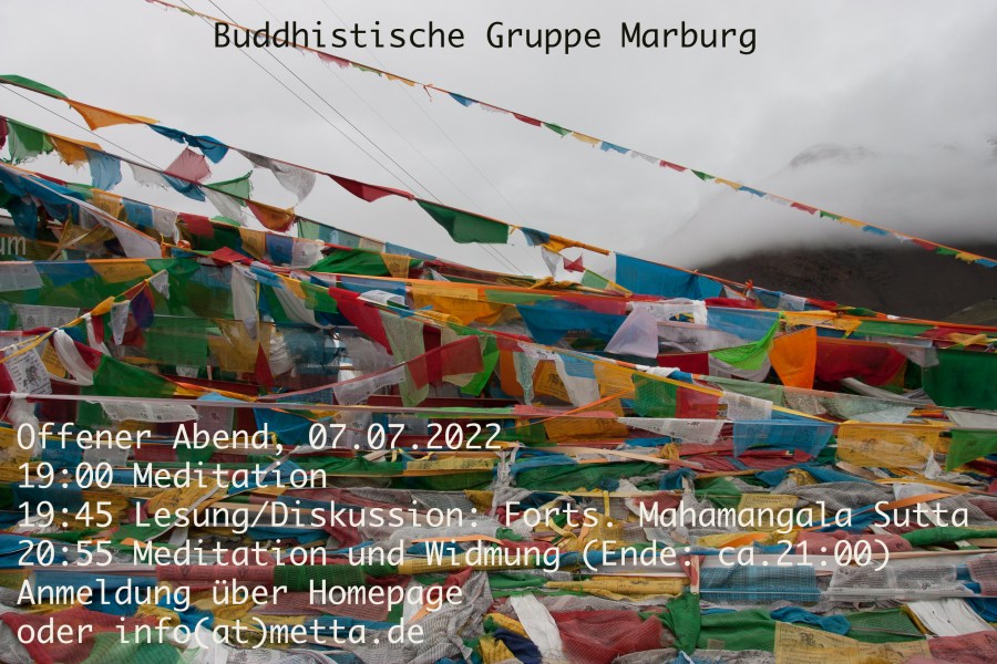 Die vorgestellten Inhalte entsprechen nicht notwendigerweise den Haltungen aller Mitglieder der Buddhistischen Gruppe Marburg. Das blaue Datum gibt an, wann wir dies hier veröffentlicht haben.