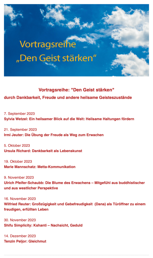 Buddhistische Akademie Berlin-Brandenburg: Vortragsreihe „Den Geist stärken“