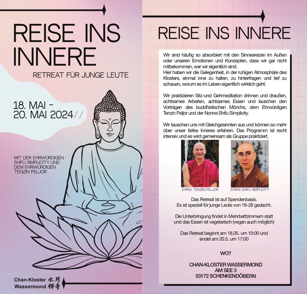 Buddhistisches Retreat für junge Leute im Mai 2023, mit Shifu Simplicity und Tenzin Peljor
