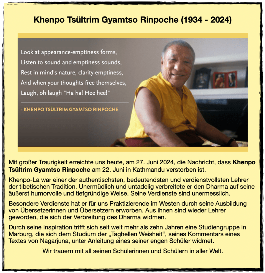 Mai Kurs 2023: Gewahrsein entwickeln mit Lama Tilmann Lhündrup