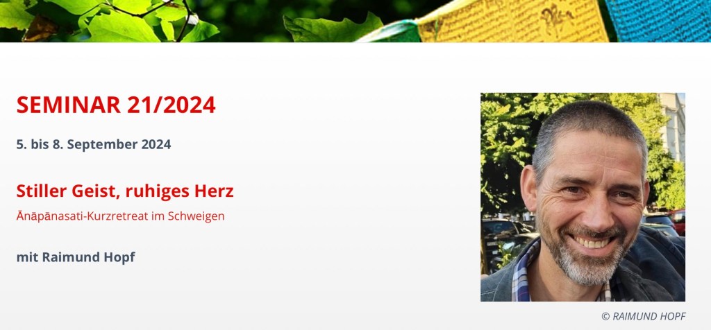Vom 2. bis 12. Oktober findet in Basthorst, in der Nähe Hamburgs, ein 10-Tage-Vipassanā-Retreat auf der Grundlage der Satipaṭṭhāna Sutta statt. Es wird von dem sehr erfahrenen Meditationslehrer Raimund Hopf geleitet.