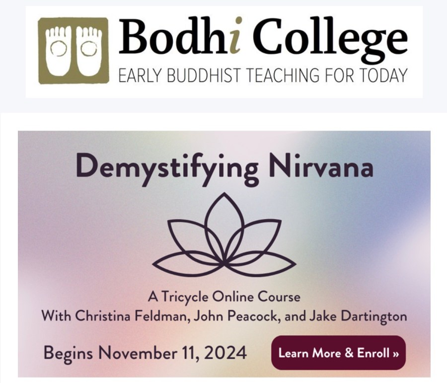 Das Bodhi College bietet in Zusammenarbeit mit der buddhistischen Zeitschrift Tricycle einen sechs-wöchigen Online Kurs „Demystifying Nirvana“ (Entmystifizierung von Nirvana) an. Er beginnt am 11. November 2024.