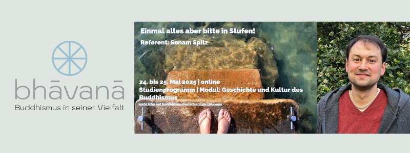 Im Rahmen der Reihe „bhāvanā“ veranstaltet die Deutsche Buddhistische Union (DBU) vom 24. bis 25. Mai 2025 ein Online-Wochenende zu den Stufenwegen in den verschiedenen buddhistischen Traditionen. Sicherlich eine gute Gelegenheit, sich mit den Unterschieden und Gemeinsamkeiten der Praxiswege vertraut zu machen.